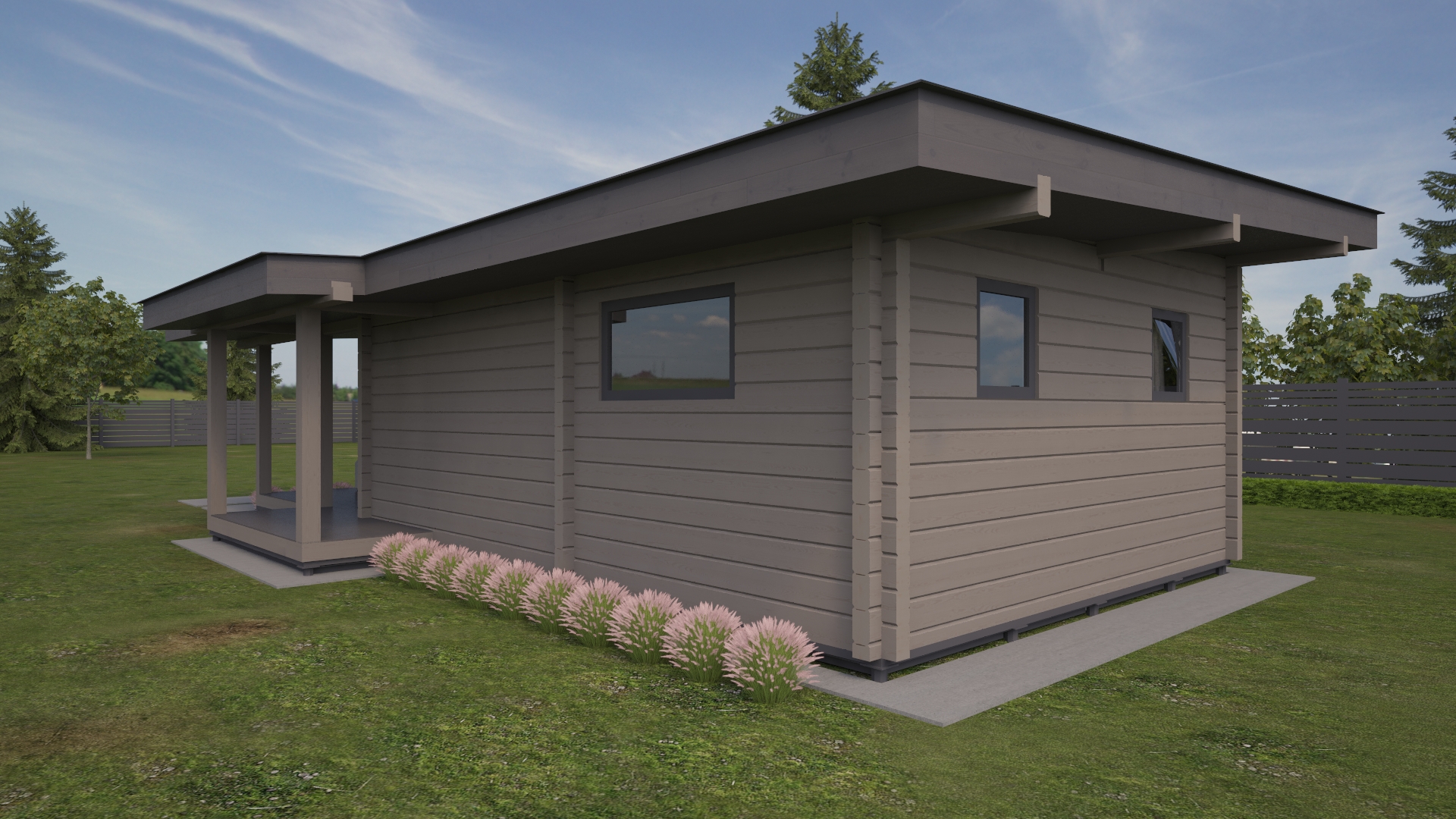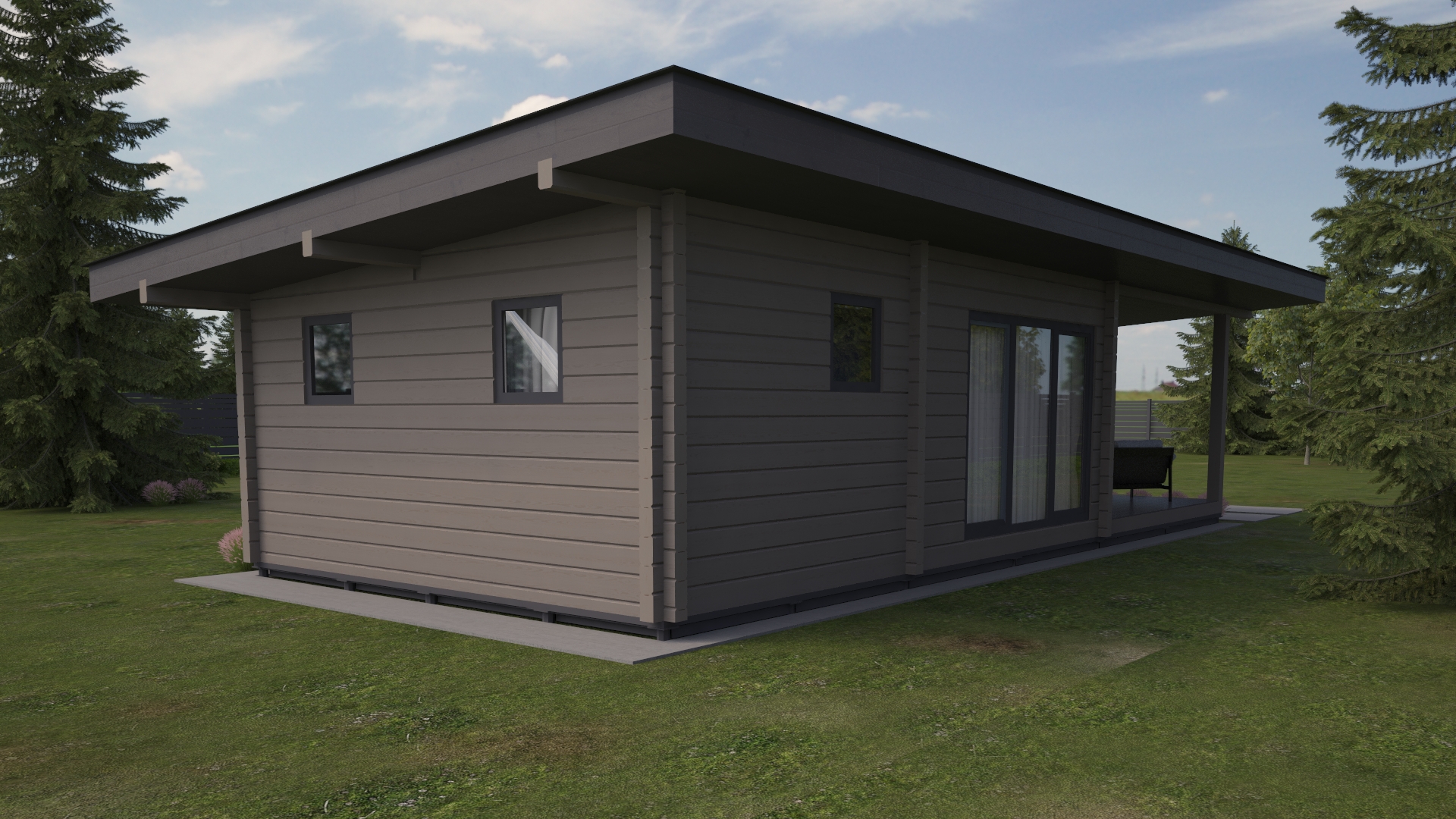 Sauna 1- это современная баня из клееного бруса с большой зоной отдыха, и террасой для барбекю.